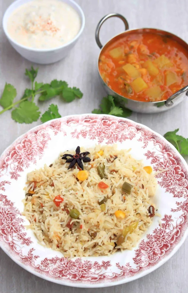 Veg Pulao pairs beautifully with a variety of sides and accompaniments. Here are a few ideas: