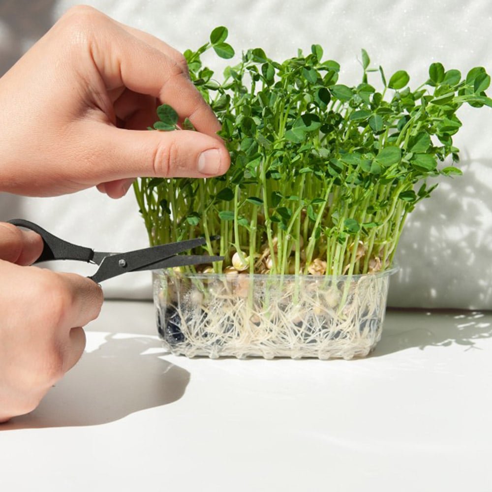 One of the biggest advantages of pea shoots is quick and repeated harvesting: