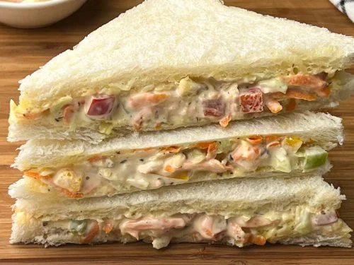 With these 5 simple steps, you can make a fresh, flavorful, and satisfying Vegetable Sandwich with Mayo at home. The combination of soft bread, creamy mayo, and crisp vegetables makes it a versatile snack or meal suitable for any occasion.