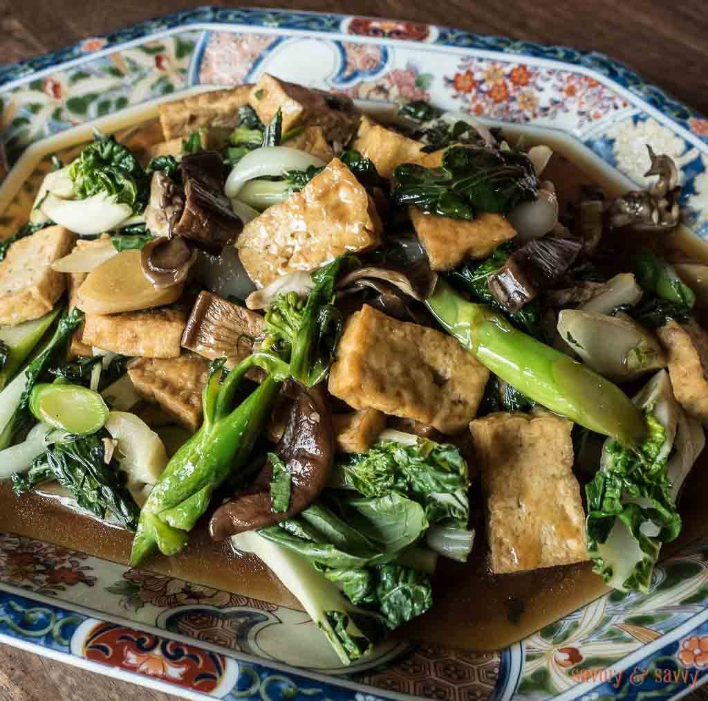 Tofu is the protein hero of this dish, taking center stage as our “forest ghosts.”