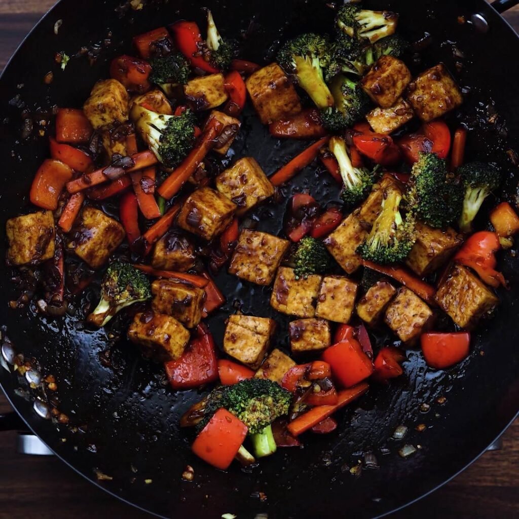 Let everything cook together for 2–3 minutes, allowing the flavors to mingle. The tofu will soak up that umami-packed sauce while maintaining its crispness.