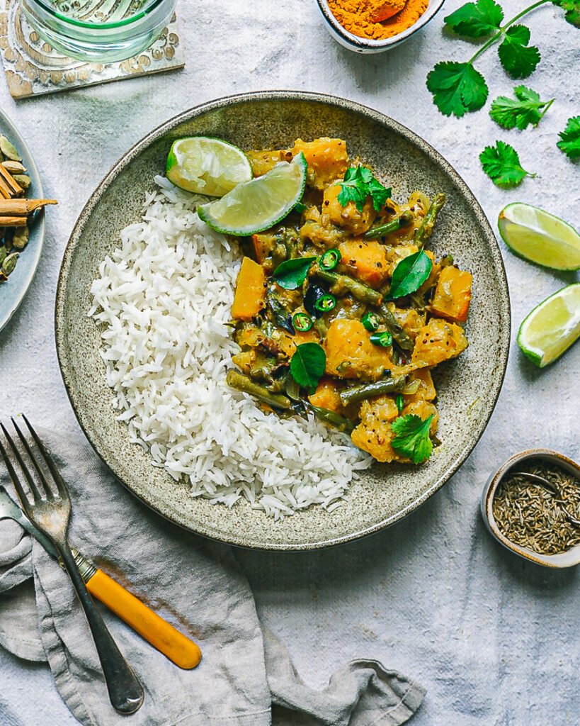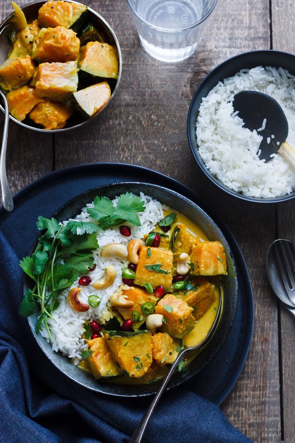 Pumpkin is rich in vitamin A, fiber, and antioxidants, making this curry a nutritious fall meal. Combined with coconut milk, it provides healthy fats that keep you full and energized.